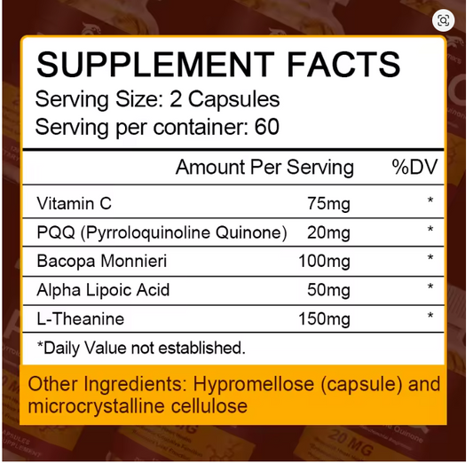 PQQ 20mg sa dodatcima(Vit.C,Bacopa,Alfa Lipolik Acid i L-Theanine),60 softgell uljane kapsule;Podrška za srce,energiju,bolji san,mitohondrije i mentalno-opšte zdravlje ;Reklamna akcija 2 kom + 1 gratis