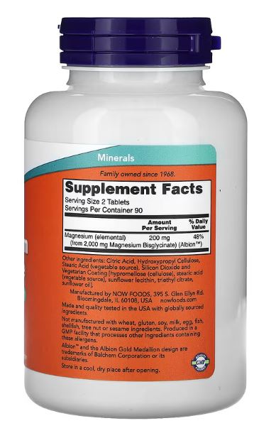 Magnezijum Glicinat(Glycinate),180 tableta (100 mg po tableti); NOW FOODS USA;“zlatni standard”, apsorpcija do 80%, blag za probavu, idealan kod stresa, nesanice i napetosti mišića.Opušta krvne sudove i srcu stabiliše ritam...Preporuka i za sportiste..