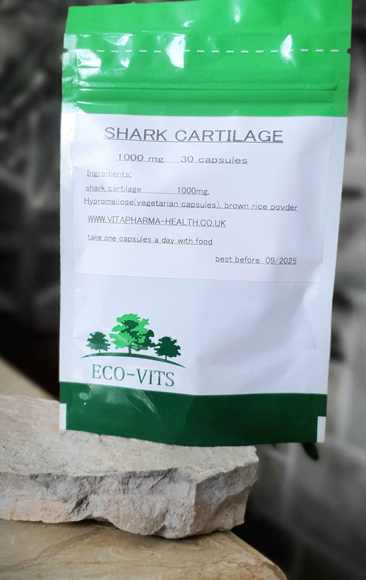 SHARK CARTILAGE (Ajkulina Hrskavica) 30 caps-1000mg: Za bolje zglobove i kosti,upalne procese zglobova i infekcije ..ECO-VITS UK