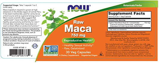 Maca, Raw, 750 mg, 90 Veg Capsules;Organsko-6.1 koncetrat;Gelatizovana i bolje svarljiva-(Now Foods)