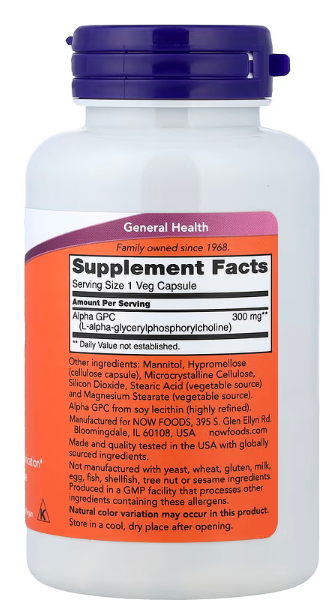 Alpha GPC 300mg-60 kaps.fiziološki prekursor acetil-holina, neurotransmitera koji je uključen u pamćenje i druge kognitivne funkcije;Može pomoći kod oporavka od moždanog udara,pomaže pamćenju,raspoloženju i još toga...Now Foods USA