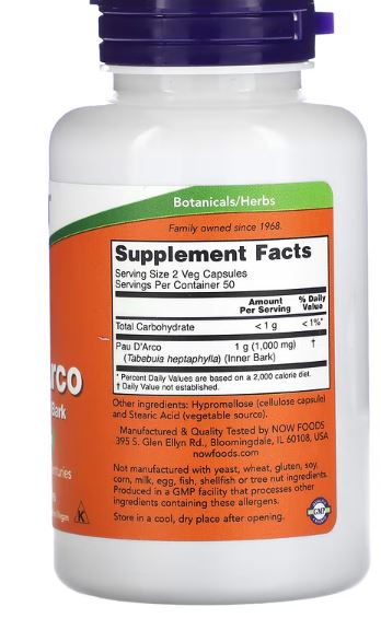 Pau D' Arco-Tahebo, 500 mg, 100 biljnih kaps.NOW Foods USA;Ima mnogo zdravstvenih svojstava. Antifungalni, Antivirusni, Antimikrobni,Za poboljšanju općeg blagostanja, poboljšanje imuniteta i bržem oporavku od bolesti poput prehlade i gripe