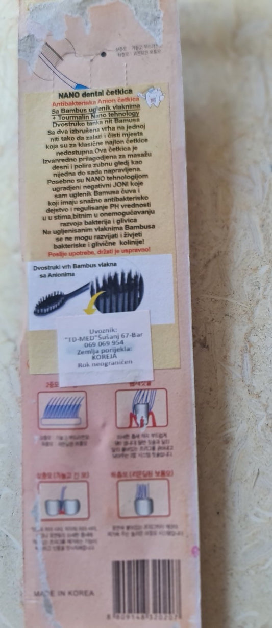 Nano Bamboo Zubna Dental četkice-2 komada;Sa Bambus uljenik vlaknima sa dva vrha + Tourmalin Nano tehnološke drške sa anjonima;Antibakterisko djelovanje i čišćenje zuba i proteza uz regulisanje PH vrednostima u ustima