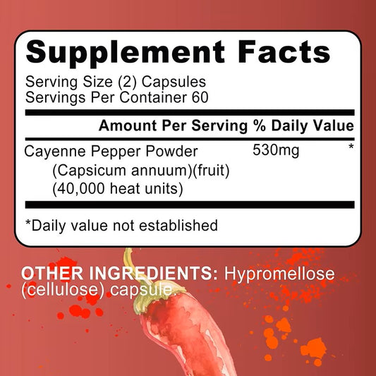 Cayenne pepper-Kajana 60 kaps.;(Ćili ljuta paprika extract) 40.000 toplotnih jedinica/ 530 mg *; Airboy-USA;za bolju cirkulaciju,manji loš holesterol,podiže iminitet,bolju probavu...