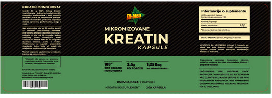 Kreatin Monohidrat Mikronizovani 100 kaps.U 2 kapsule doza od 2,5grama;Izrazito bioraspoloživiji od drugih i manju gastrointestinalnu nelagodnost....Za veću snagu vaših mišića,energiju i veću izdržljivost. 2 pakovanja uz popust
