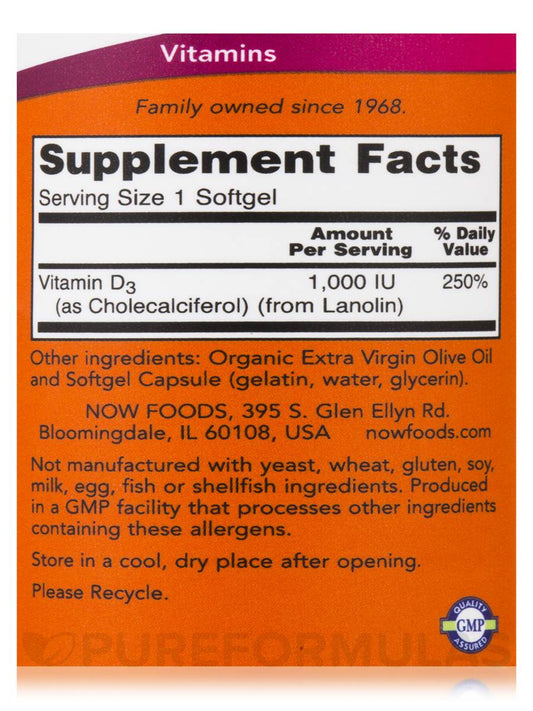 Vitamin D-3 1000 IU,180 mekih softgels ,Now Foods USA,veliko porodično pakovanje