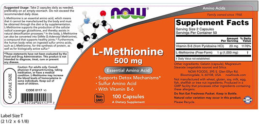 L-Methionine 500mg-100 caps. Now Foods USA; Pomaže u prirodnim procesima detoksikacije,i podržava glutation (moćni prirodni antioksidans); Za zglobove ,jetru i više energije i kreatina