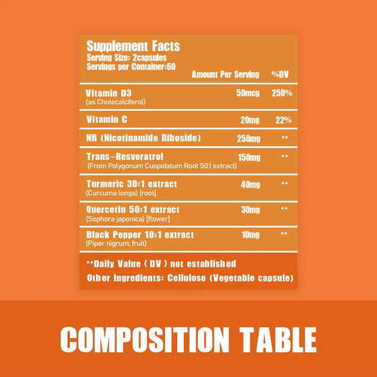 NAD + Boosting 60 caps.3u1(NR,NMN,NAD)+Resveratrol,Turmeroc,Quercentin.. - sa Nikotinamid Ribozidom i dodatcima(Resveratrol,Turmeric+Quercentin) ; PROTIV STARENJA,prirodna energija i zdravlja ćelija;Coolkin USA