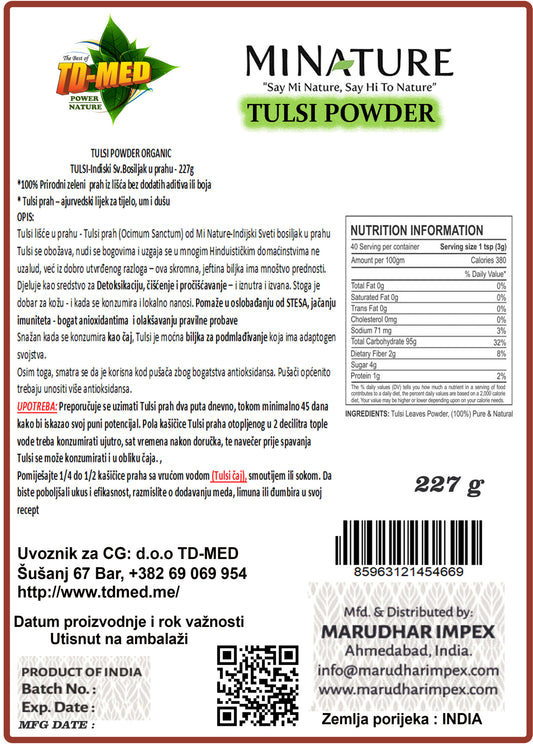 TULSI -Indiski Sv. Bosiljak u prahu 227g,Organic Indija Mi Nature