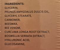 Pčelinji otrov krema(Bee Venom)30g;Krema za zglobove ;Obogaćena sa Kurkumom,Tamjanom,Glukozaminom i još toga | za zglobove kolena, ruke, lumbalnog dela kičme i vrata; za brže olakšanje i bolju pokretljivost.