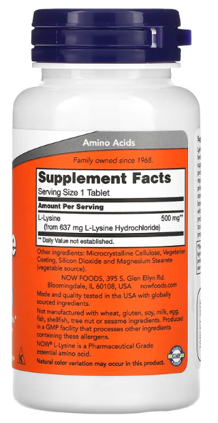 L-lizin, 500 mg, 100 tableta;NOW Foods-USA; Za podršku imunitetu, zdravlju kože,kostiju i mišića i kostiju, te za prevenciju herpes infekcija,smanjenju stresa....