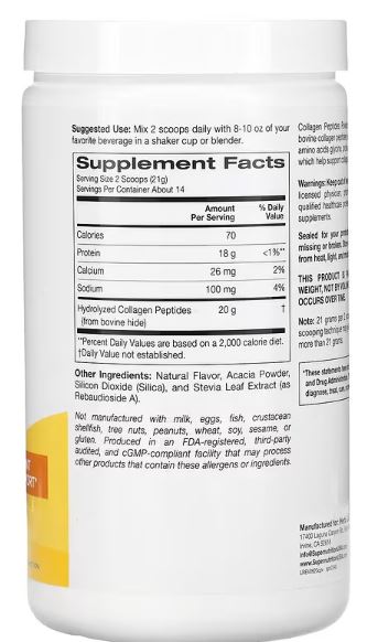 Kolagen peptidi,(ukus Vanile), 295g,Super Nutrition-USA; Podrška za kosu, kožu, nokte i zglobove*