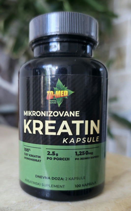 Kreatin Monohidrat Mikronizovani 100 kaps.U 2 kapsule doza od 2,5grama;Izrazito bioraspoloživiji od drugih i manju gastrointestinalnu nelagodnost....Za veću snagu vaših mišića,energiju i veću izdržljivost