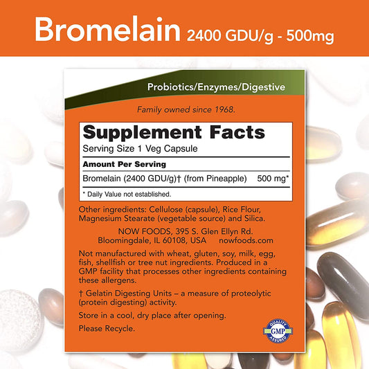 Bromelain 500 mg, 120 biljnih kapsula Now Foods