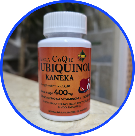 Ubikinol CoQ10 KANEKA-MEGA Ubiqunol 400mg u 2 kaps. (60 caps,);Extra snage + dodatak Vit.E i Bioperina;;"Japan-Hanzhong Bingo Aladdin Co.Ltd" za USA/EU ;Za bolji rad srca-energije,mozak,jetra i još toga ; REKLAMNA cena