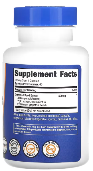 Ekstrakt sjemenki grejpfruta(Grapefruit Seed Extract),2.000 mg, 60 kaps.Podrška zdravlju srca,vaskularnog sistema,Imunitetu i digestivnom traktu;NUTRICOST-USA
