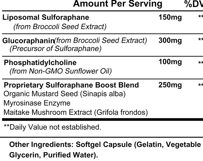 Sadrži glukorafanin + mirozinazu + liposomalnu tehnologiju, što omogućava 3–5× veću proizvodnju i apsorpciju sulforafana.