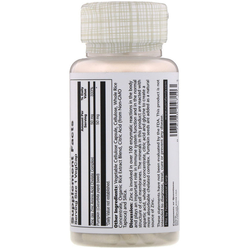 Cink je uključen u preko 100 enzimskih reakcija u tijeku i ima važne aktivnosti u funkciji imunološkog sistema i normalne strukture ćelijskih membrana. Minerali u ovom proizvodu reagiraju sa aspartanskim kiselinom, koncentrišu cijelu rižu, limunskom kiselinom i glicinom kako bi se stvorili složeni helatni kompleksi. Sjemenke bundeve dodaju se kao prirodni izvor cinka .
