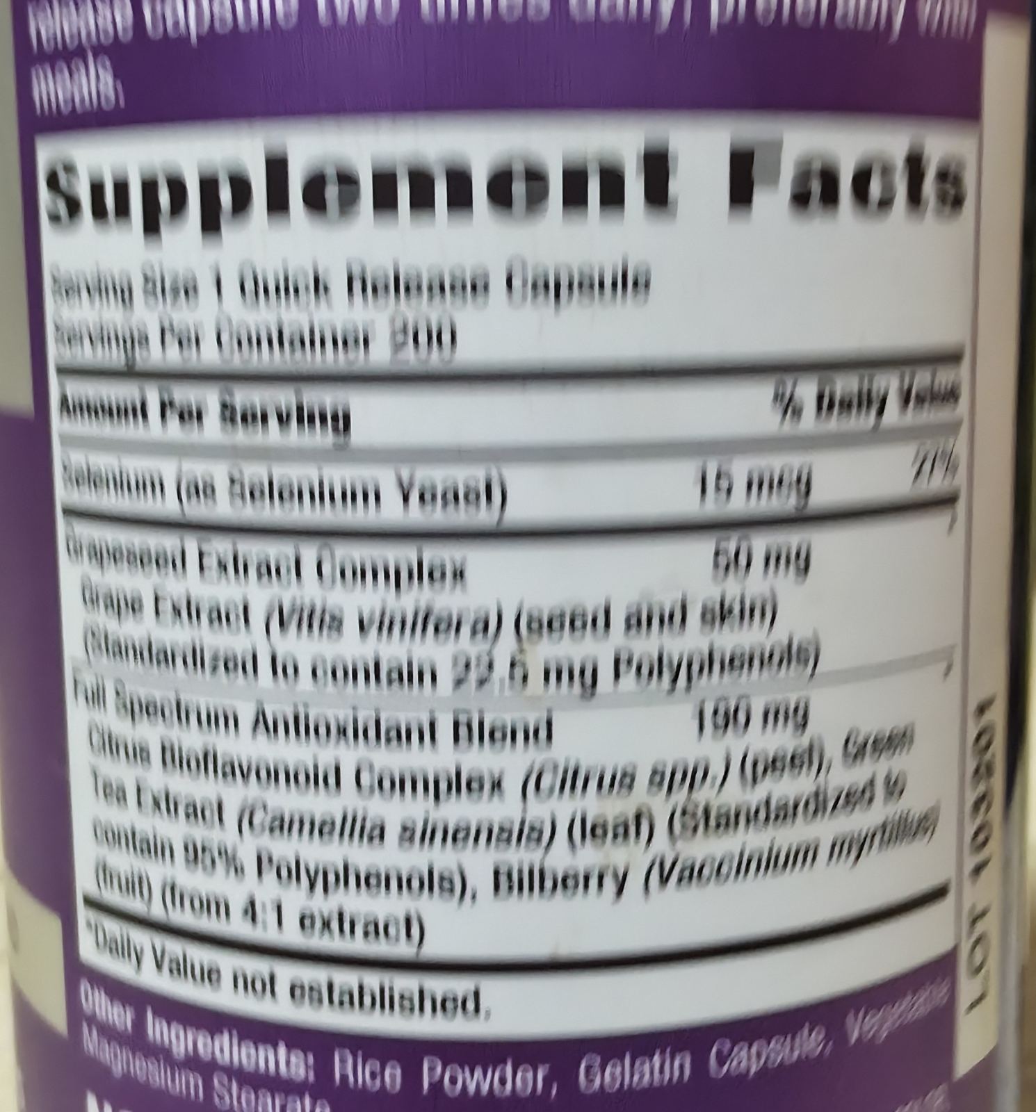 Grape Seed Extract(iz Semenki Groždja) sa dodatcima Selenijuma,Citrus Bioflafnoidima,Green Tea Extract,Borovnica extract;Za Imunitet.za Štitnu podrška,Cirkulkaciji.manji LDL holesterol,,poboljšava vida,pušače i starije.. i još toga...Posebna akcija !