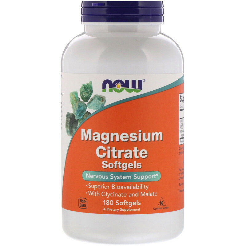 Magnesium Citrate, 180 softgels,Efikasna bioraspoloživost; sa Glycinate and Malate Now Food