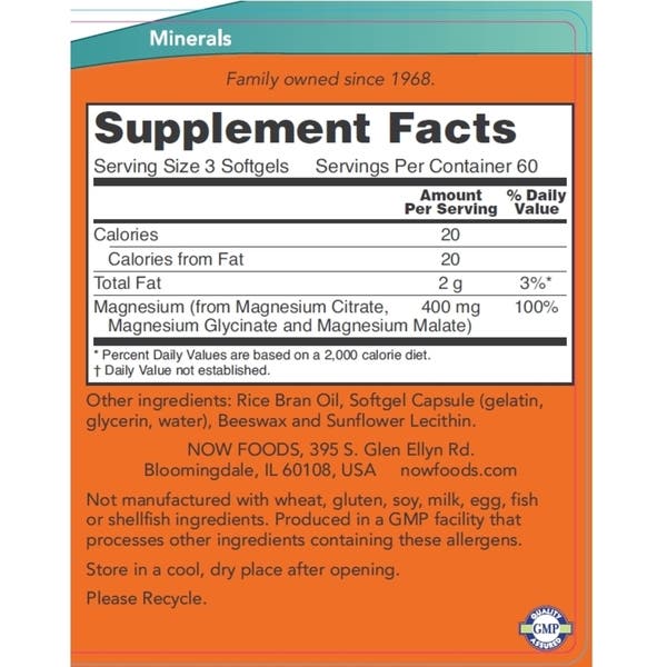 - Magnezijum je mineral koji je kritičan za proizvodnju energije i metabolizam, kontrakciju mišića, prijenos nervnih impulsa i mineralizaciju kostiju. To je potrebni kofaktor za i procijenjeno 300 enzima. Među reakcijama koje kataliziraju ovi enzimi su sinteza masnih kiselina, sinteza proteina i metabolizam glukoze. Status magnezijuma je takođe važan za regulaciju ravnoteže kalcijuma kroz njegovo dejstvo na paratireoidnu žlezdu. Magnezijum-citrat se lako apsorbuje, a NOW® Magnezijum-citratni kapsule mekane su u tečnoj bazi sa helatnim oblicima za vrhunsku bioraspoloživost.
