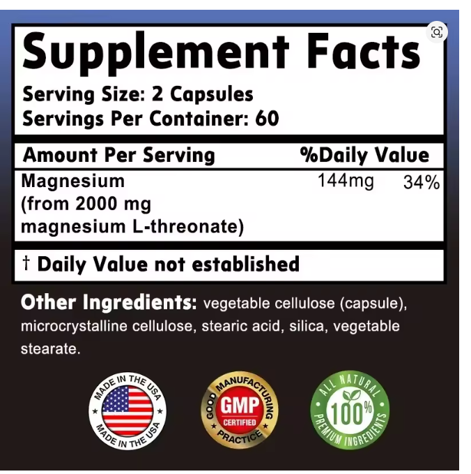 MAGTEIN-(NEURO-MAG.)L-Threonate;120 caps.-1000mg;Dnevna doza 2 kaps-2000mg;Za bolje pamćenje i memoriju,bolji rad moždanih ćelija...Reklamna AKCISKA cijena,Veliki popust za 3 komada