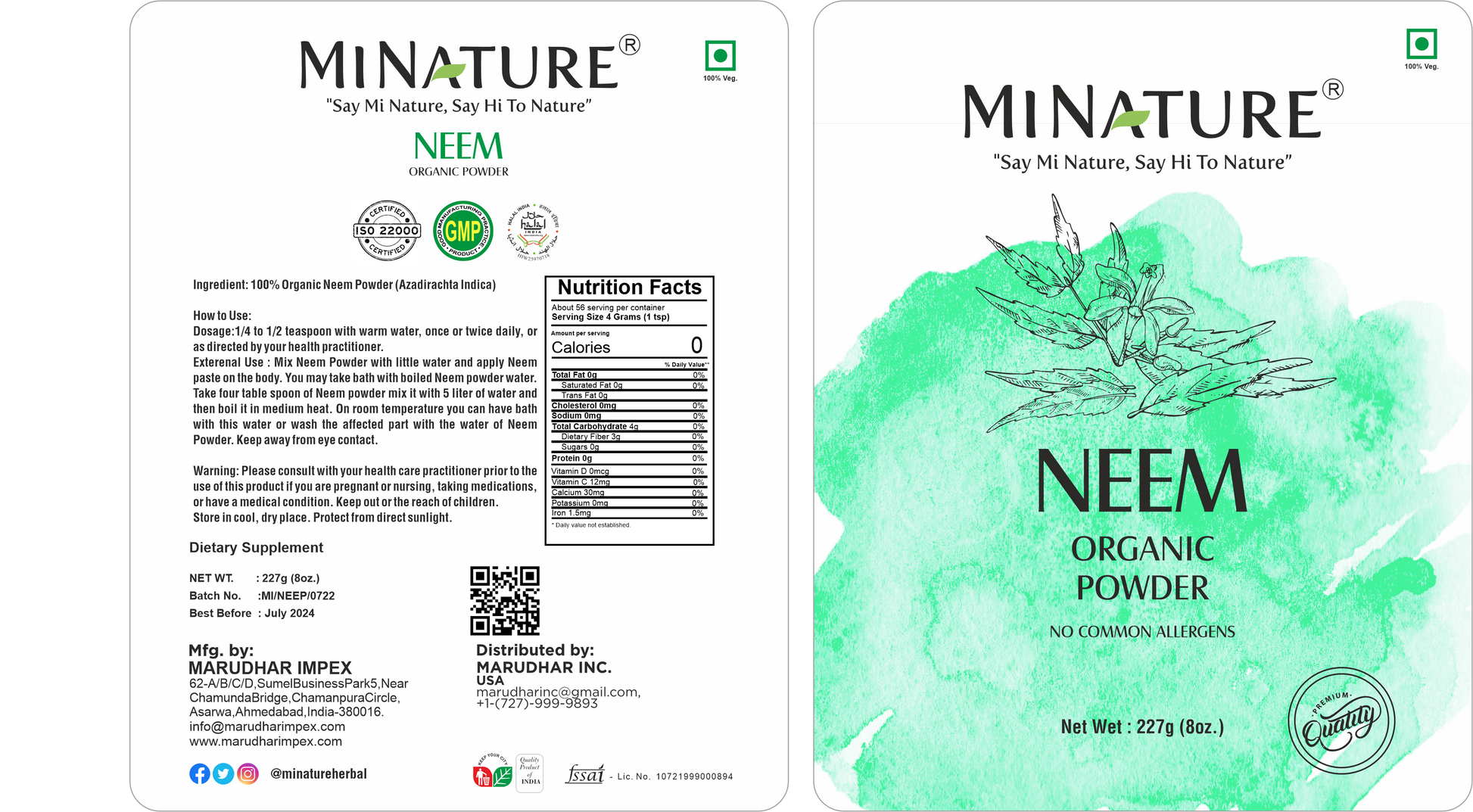- Neem Leaf prah je prerađen od divlje ubranog neema (ručno izrađen). Divljina je u suštini organska jer se ne uzgaja već dolazi iz prirodnih šuma. Bez parabena. Bez glutena. Bez aditiva. Nema GMO. Bez konzervansa.