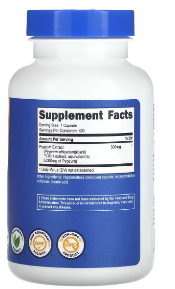 Pygeum(Afrička šljiva-kora) 500 mg(Extract 10:1=5000mg klasicnog praha), 120 kaps.Nutricost-USA;Podrška za prostatu i,bešiku i mokraćne kanale kod starijih