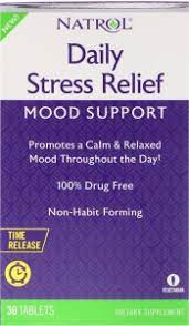 ..Natrol® Daily Stress Relief je prirodan način bez lijekova za vraćanje osjećaja smirenosti i ravnoteže. Naučno je formulisan sa mešavinom hranljivih sastojaka koji pomažu u regulaciji i podržavanju serotonina, hemikalije u telu odgovorne za poboljšanje raspoloženja. Smirujuća formula se s vremenom oslobađa, pomažući vam da imate pozitivniji i uravnoteženiji izgled tokom dana.
