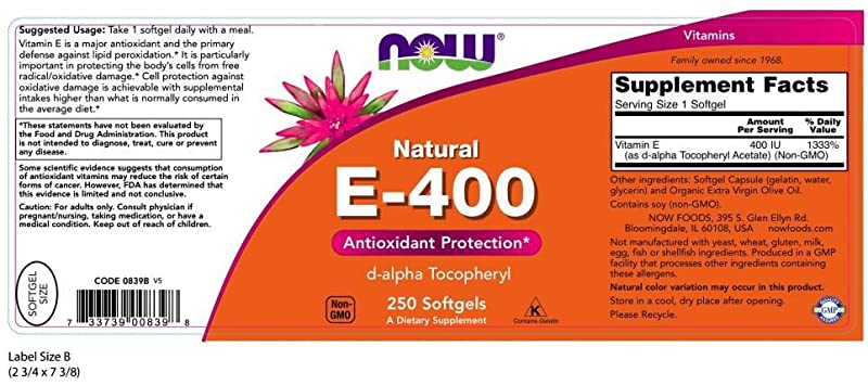 Vitamin E-400 Natural -250 Softegels Now Foods USA